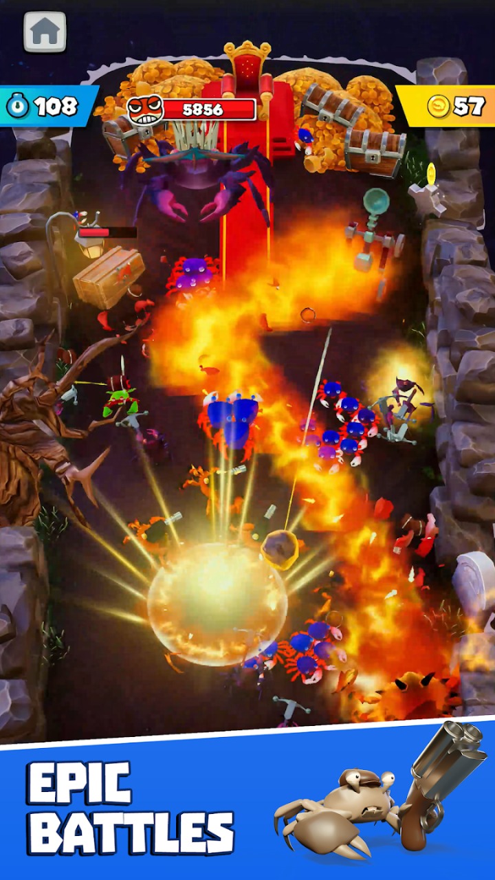 指挥一群螃蟹征服海洋在强大的蟹王入侵帝王蟹的带领下,灵活调整战术部署